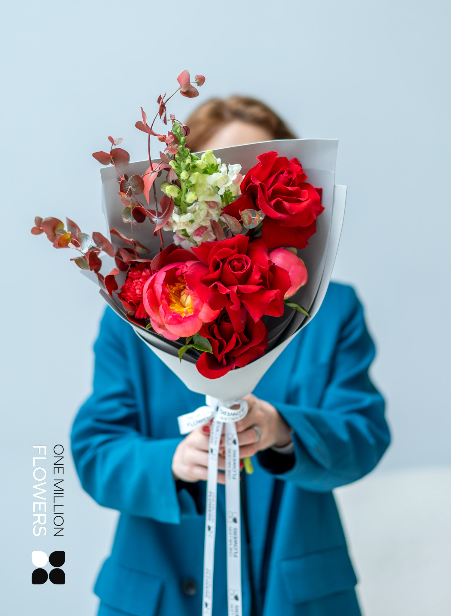 Нежный лимонный диантус (гвоздика) разбавляет палитру своим светлым акцентом, придавая букету легкость и воздушность. Завершающий штрих – PREMIUM пионы кораллового цвета, которые создают эффектную игру контрастов своими роскошными лепестками.