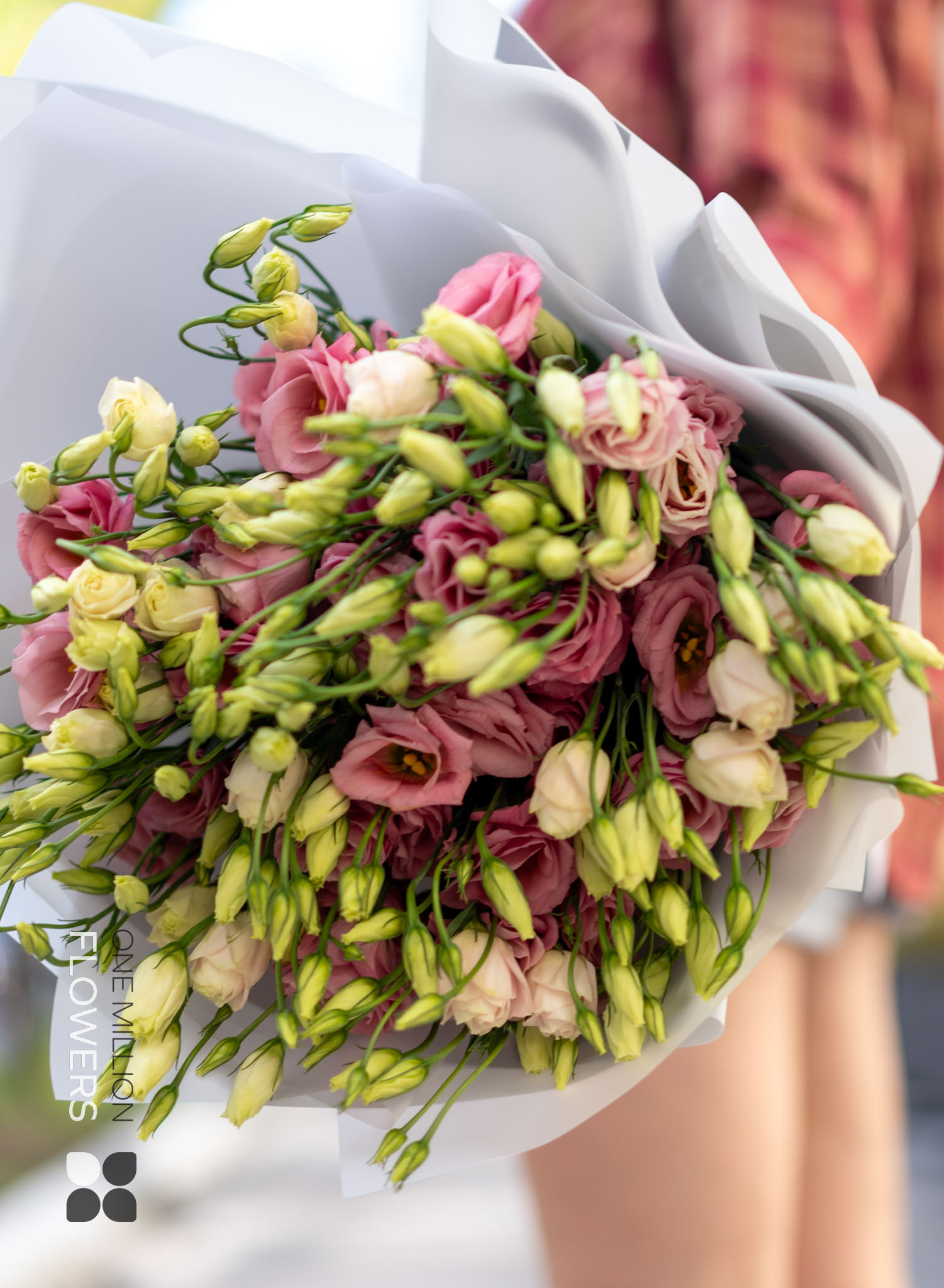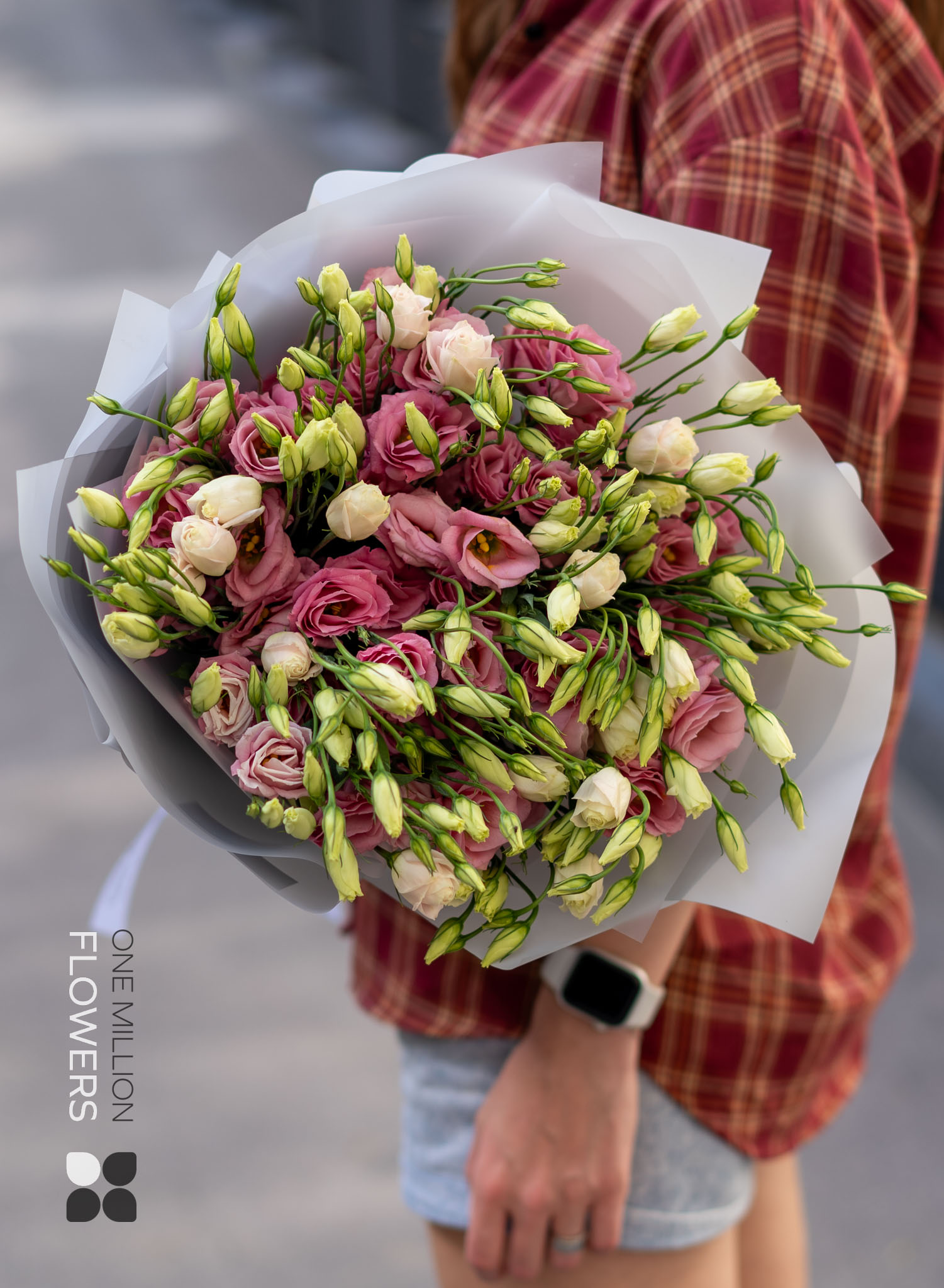 Эустома Розита — это не просто цветы, это целая история о нежности и привязанности. Этот великолепный букет включает в себя восемь изысканных розовых эустом и три белые эустомы, которые великолепно сочетаются между собой. Каждая из этих цветочных красавиц по-своему уникальна и является символом настоящей утонченности. Розовая эустома дарит тепло и радость, а белая словно олицетворяет чистоту и гармонию. Вместе они создают неповторимое сочетание, способное украсить любой момент жизни.