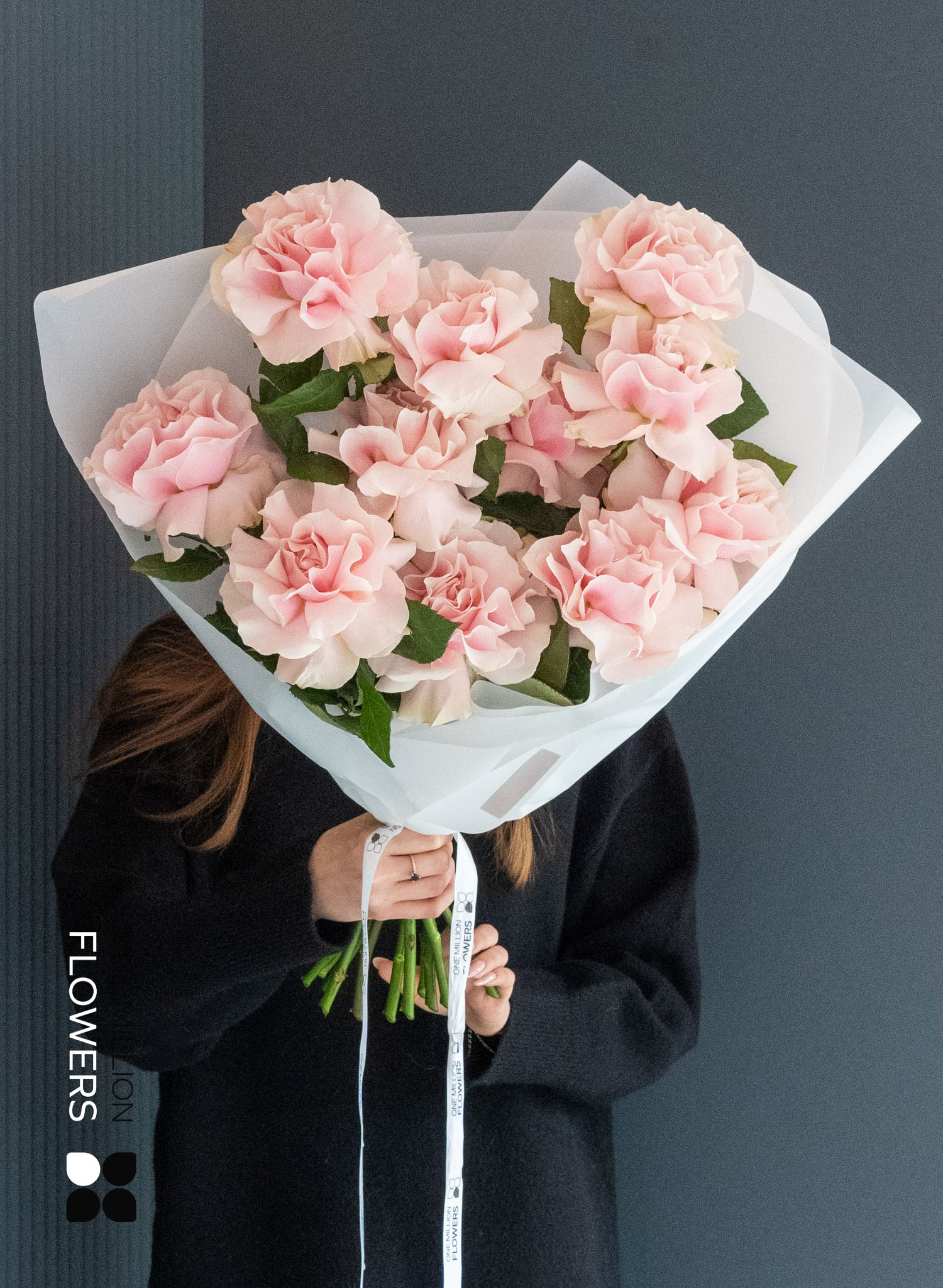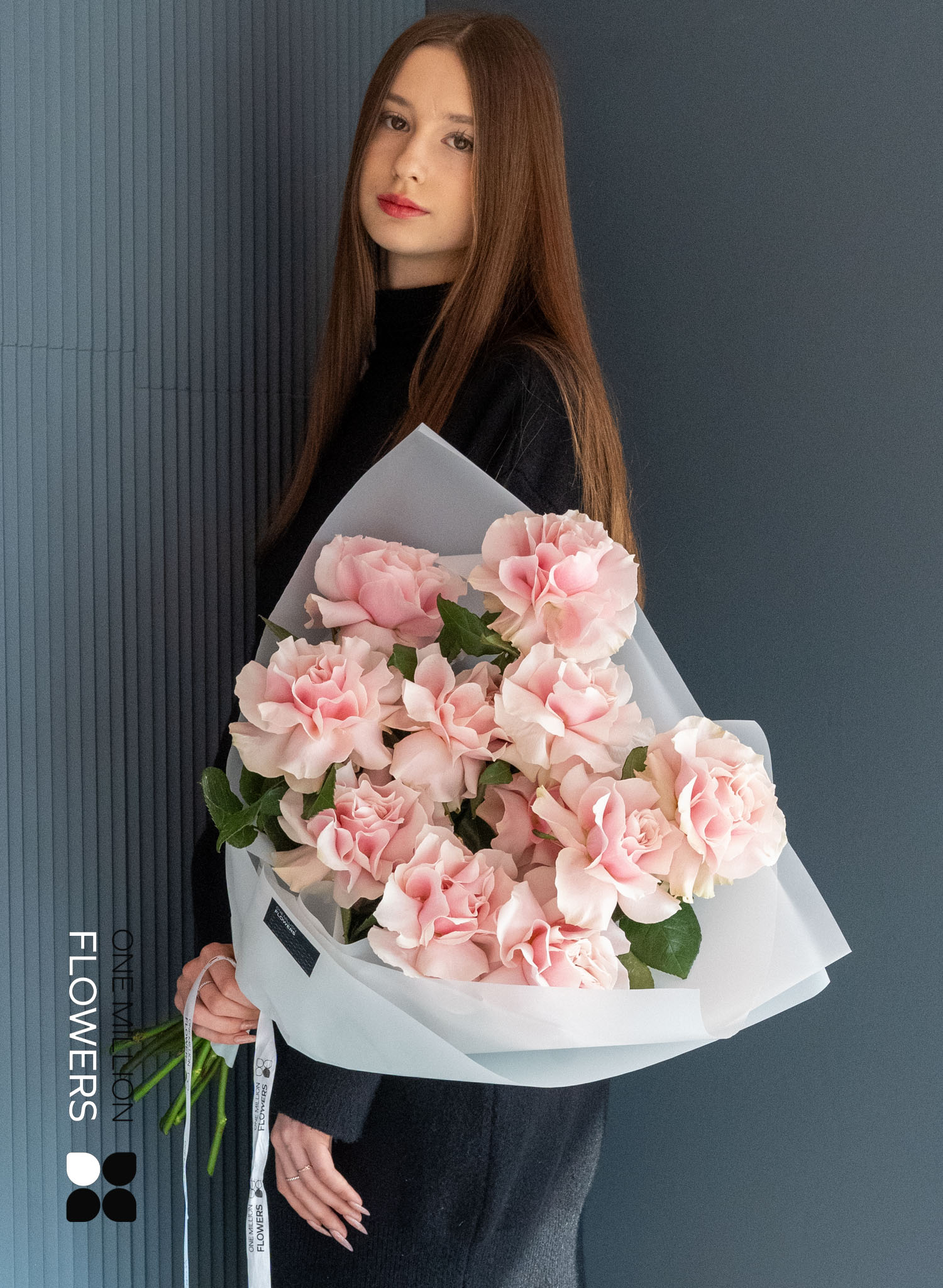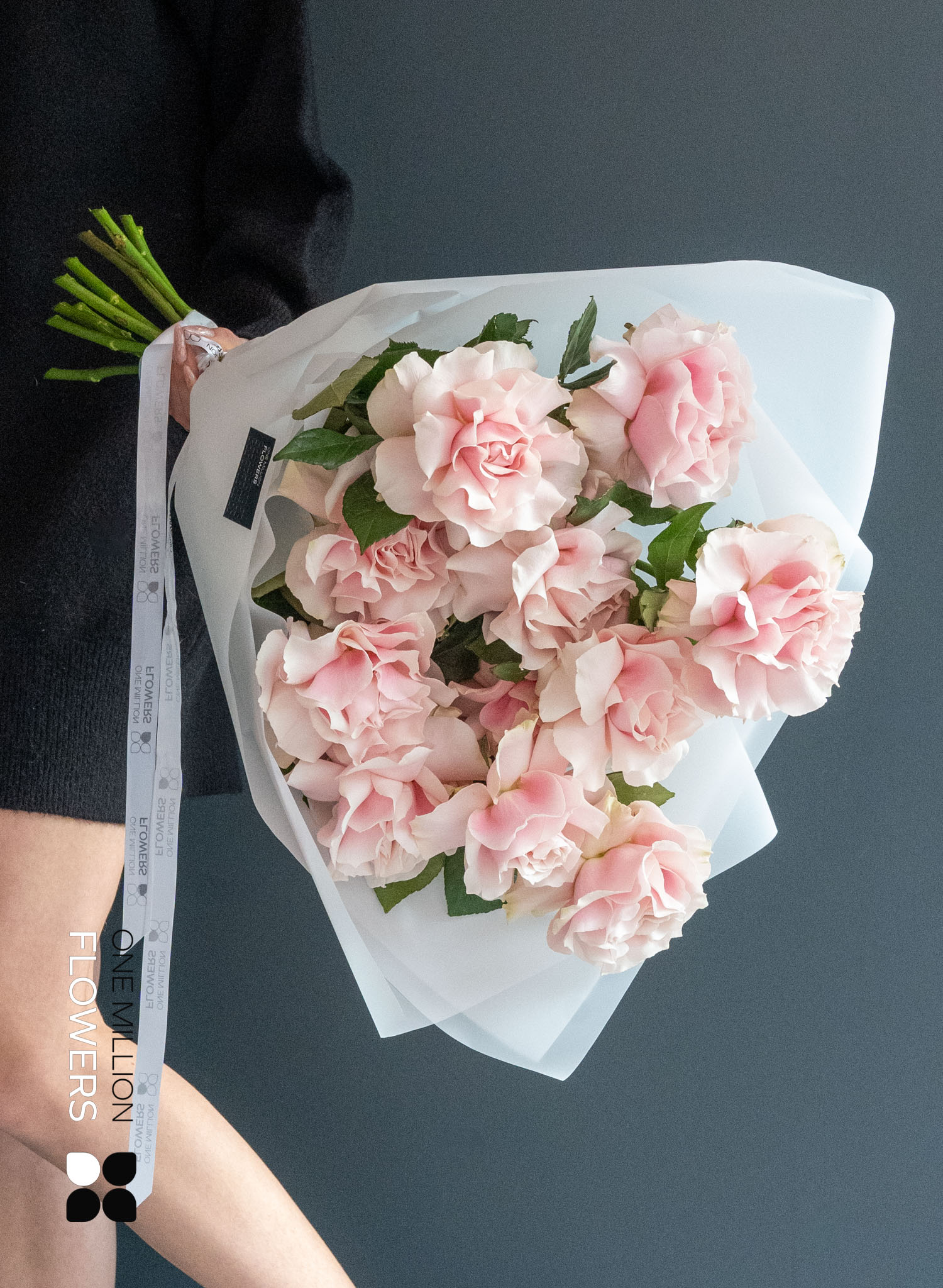 Пудрово-розовые лепестки с холодным подтоном и шелковистой текстурой — визитная карточка сорта "Пинк Мондиаль", выведенного во Франции, но выращенного на плантациях Эквадора. Благодаря высокогорному климату бутоны особенно крупные, стойкие и раскрываются плавно. Эти 11 французских роз создают гармоничный, сбалансированный букет — строгий, но чувственный.