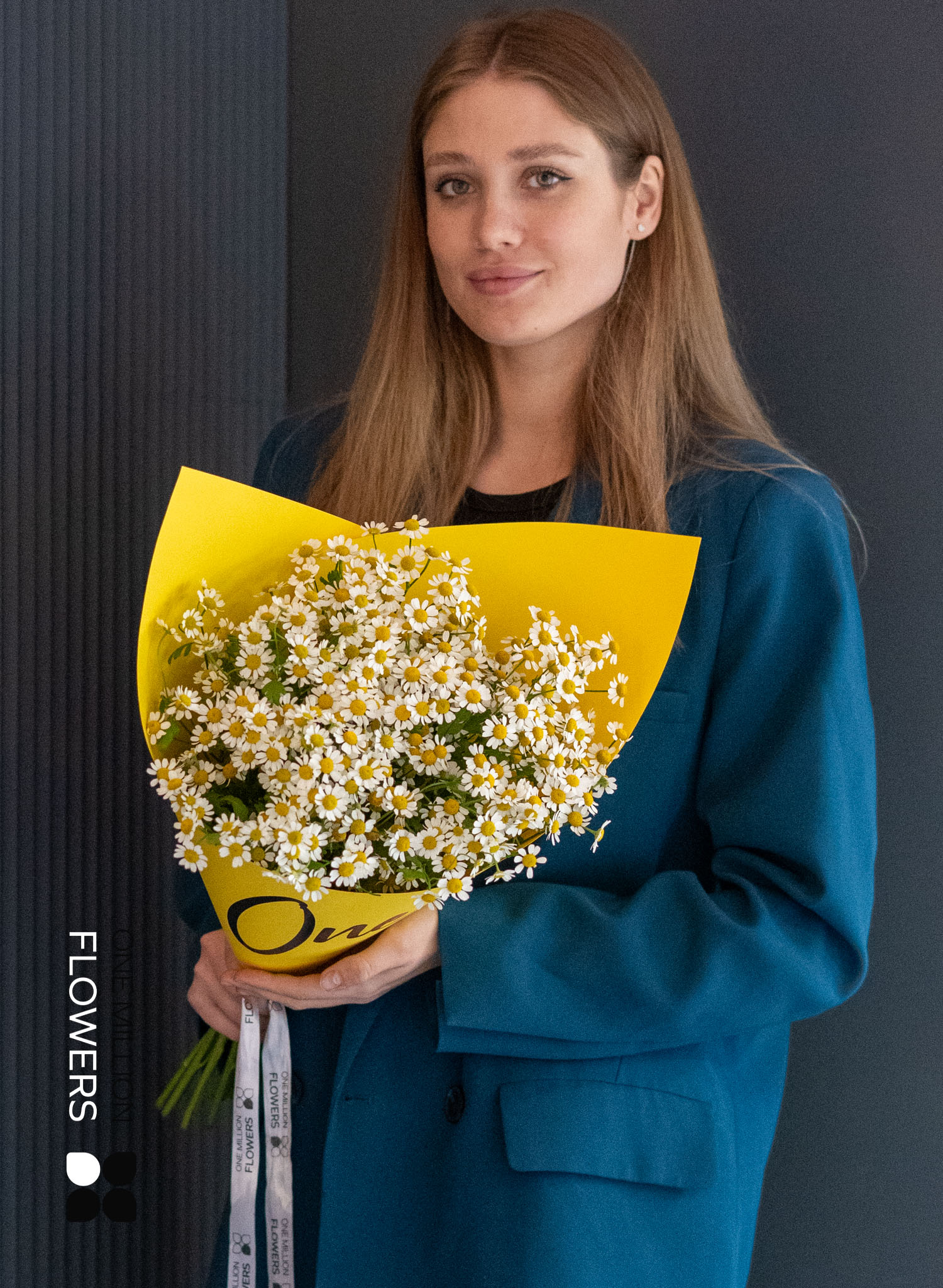 В состав букета "Дейзи" входят 15 свежих ромашек (танацетум). Эти цветы известны своей стойкостью и долговечностью, что делает их идеальными для букета. Они привносят в ваш дом не только красоту, но и атмосферу легкости. Ромашки могут стать отличным дополнением к другим цветам или самостоятельным акцентом в вашем интерьере.