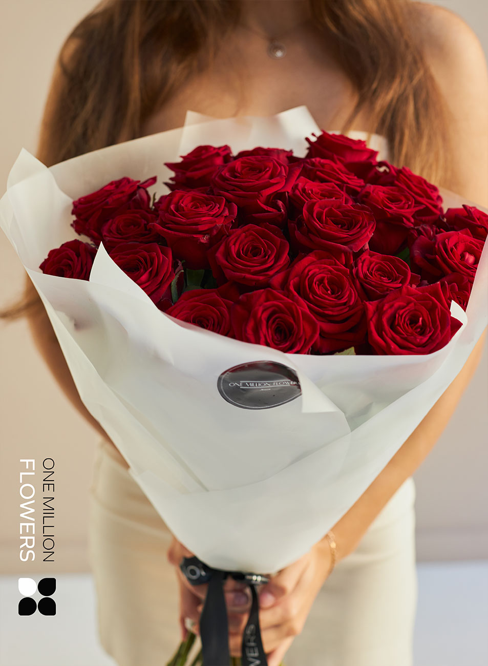 В нашем букете представлены 25 роз Рэд Наоми, известные своей ярко-красной окраской и великолепным ароматом. Эти цветы отличаются прочной стебельчатой структурой и долгим сроком хранения, что сделает их идеальным спутником для любого праздника. Розы дополняются зелеными листьями, что придает композиции живой и натуральный вид. Букет станет настоящим произведением искусства, которое украсит любой интерьер.