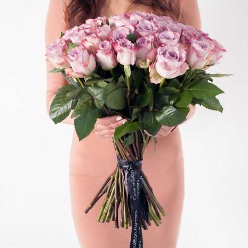 Букет из 51 розы "Морнинг Дью" – подарок, который сможет олицетворить все тепло и нежность ваших чувств. Этот букет состоит из прекрасных фиолетовых роз в количестве 51 штука.