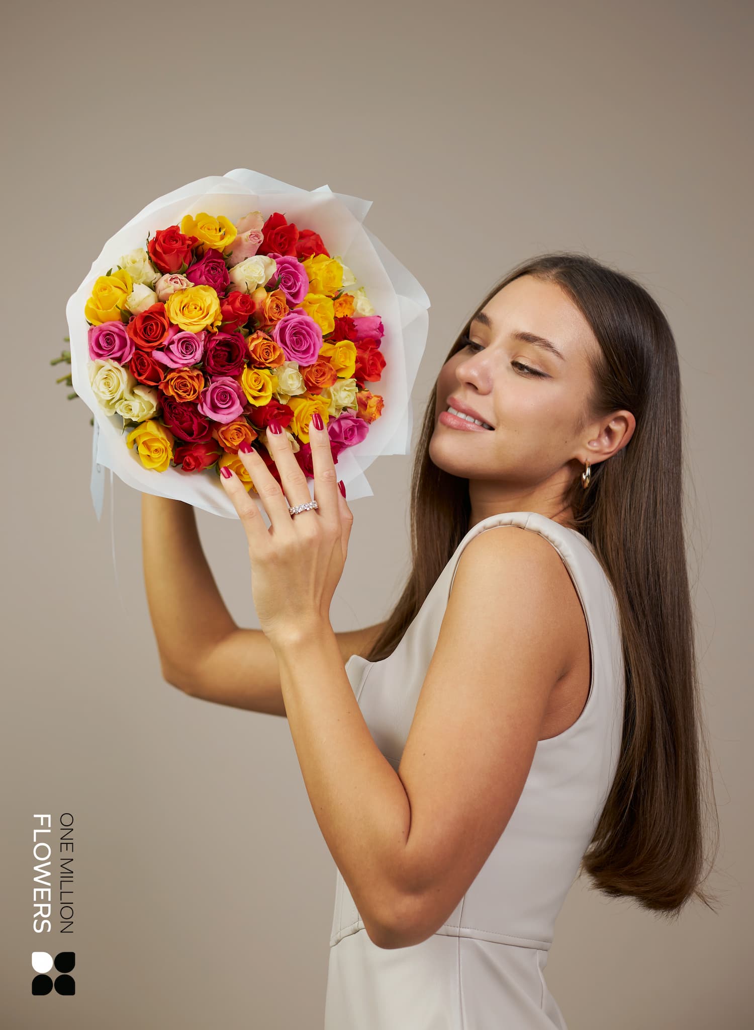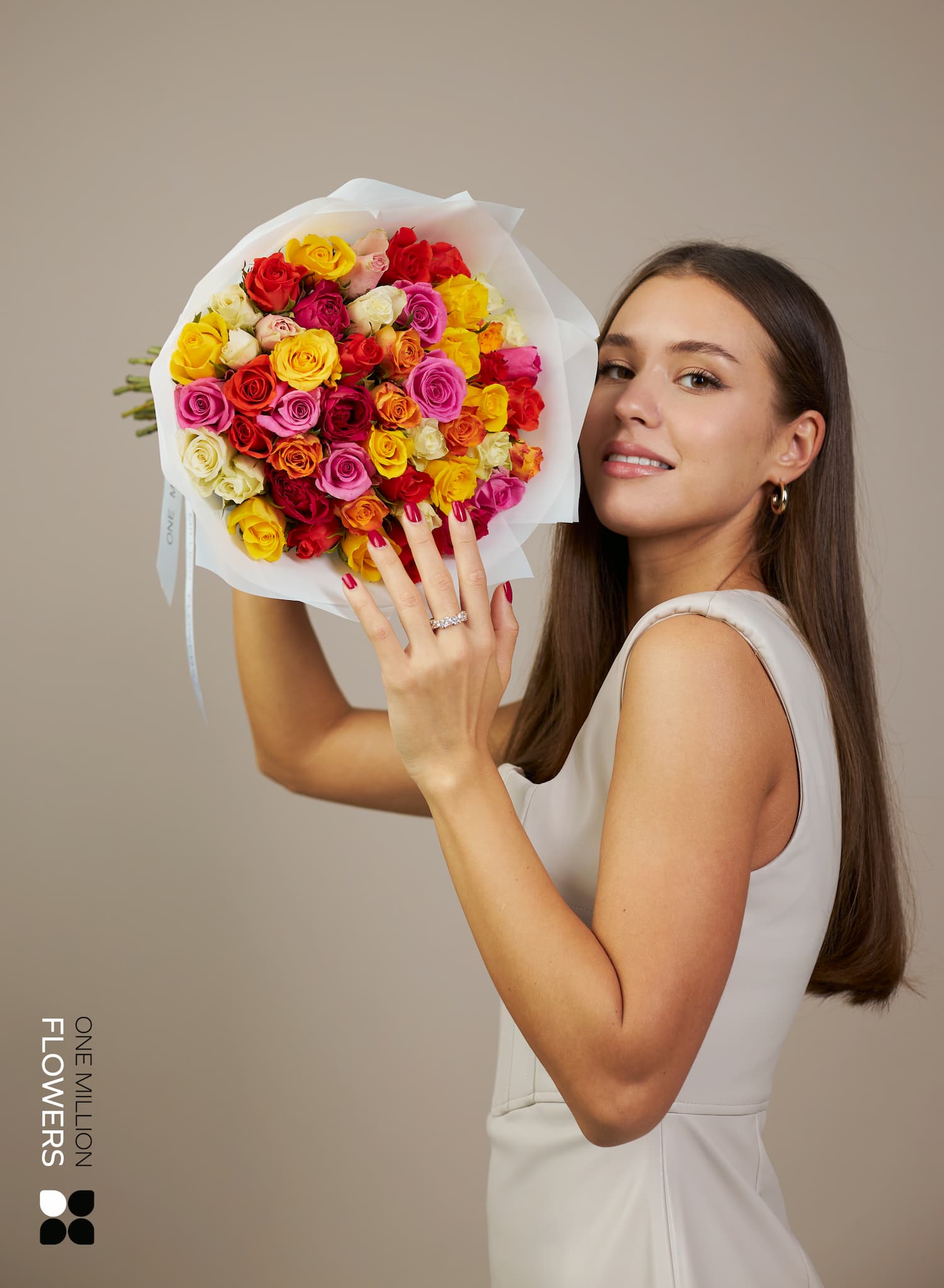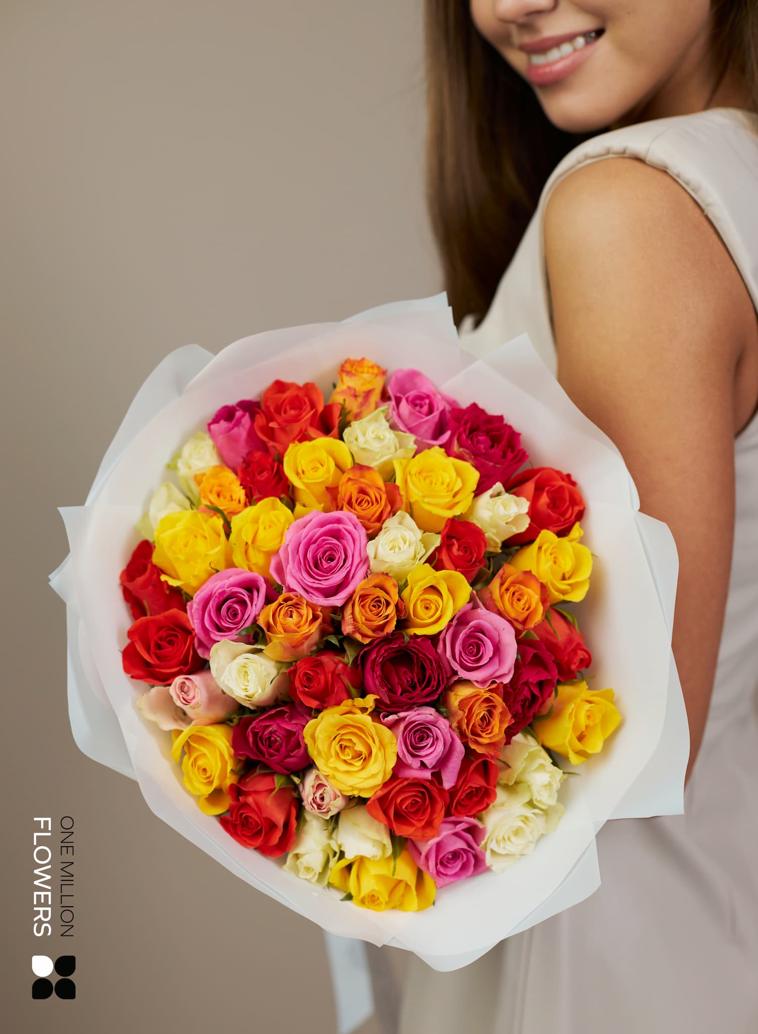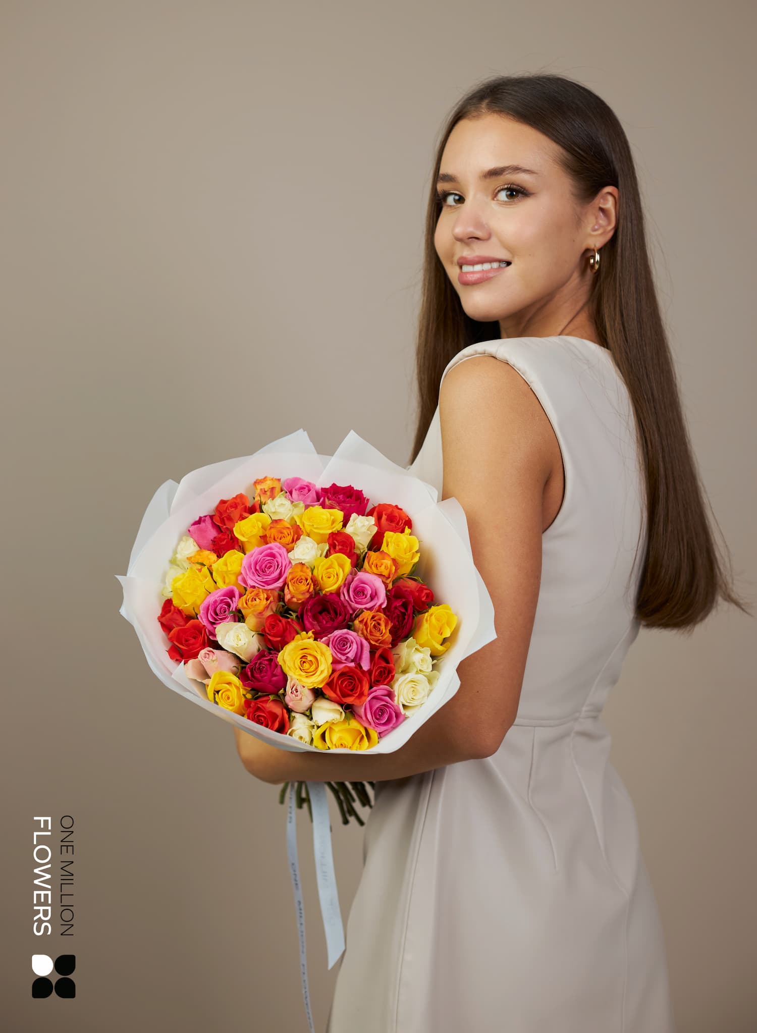 Букет из 51 розы "Шалимаро Микс" — это удивительное сочетание ярких оттенков и утонченной элегантности, которое станет настоящим украшением любого торжества. Каждая роза в этом букете обладает изысканным ароматом и шёлковистыми лепестками, способными заворожить сердца всех окружающих. Розы "Шалимаро" подарят вам ощущение праздника и радости, а их насыщенные цвета привнесут ощущение тепла и уюта.