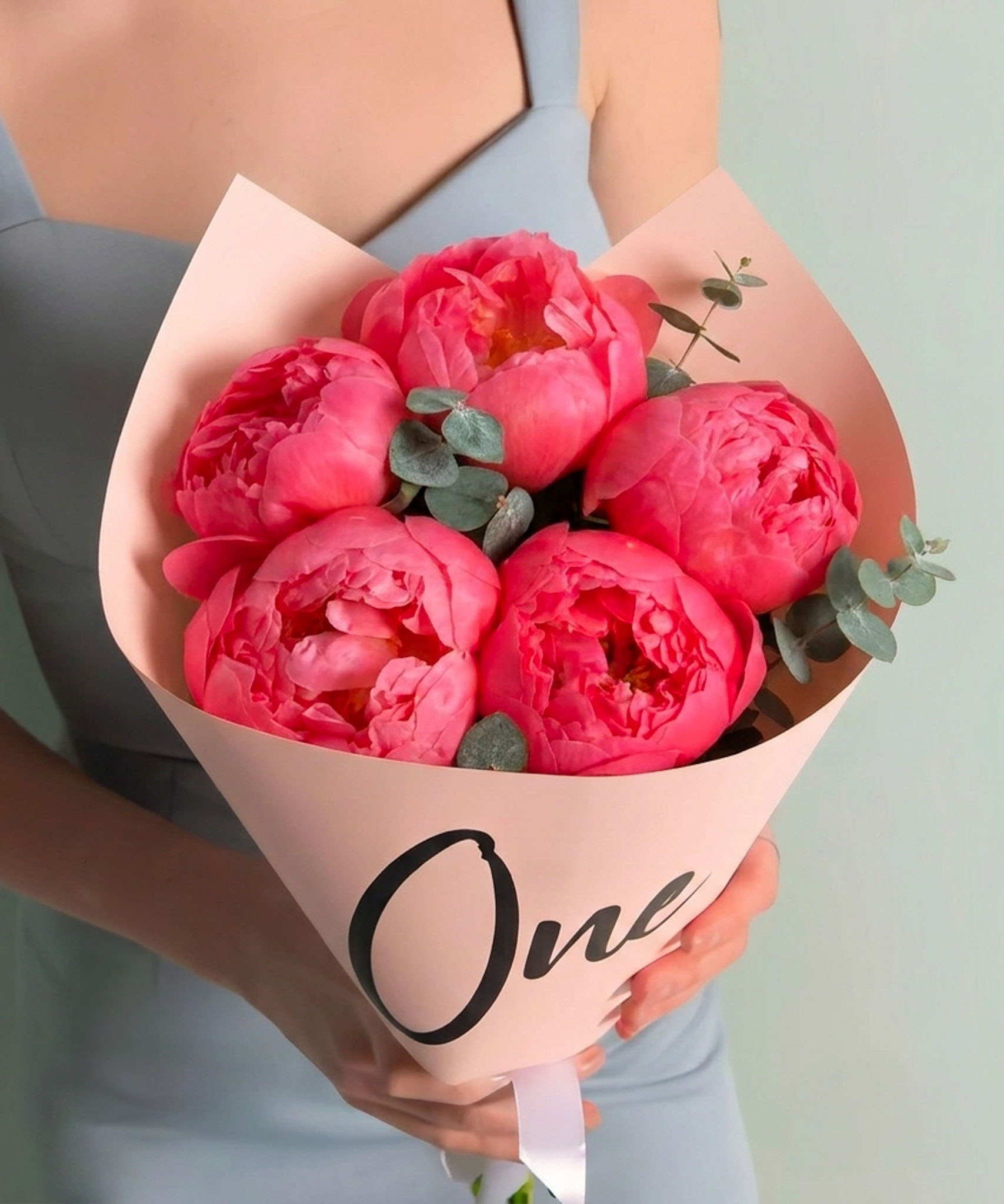Букет из 5 пионов "Салмон Дрим"