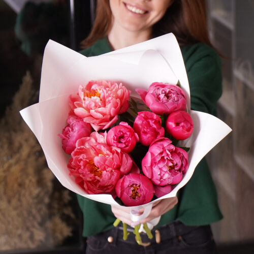 В состав букета входят 9 коралловых пионов. Эти цветы поражают своим размахом и яркостью. Каждый пион словно воплощает собой солнечный день, даря радость и положительные эмоции. Красота пионов и их неповторимый великолепный аромат способны поразить даже самых взыскательных ценителей цветов. Не упустите возможность сделать подарок, который запомнится надолго.