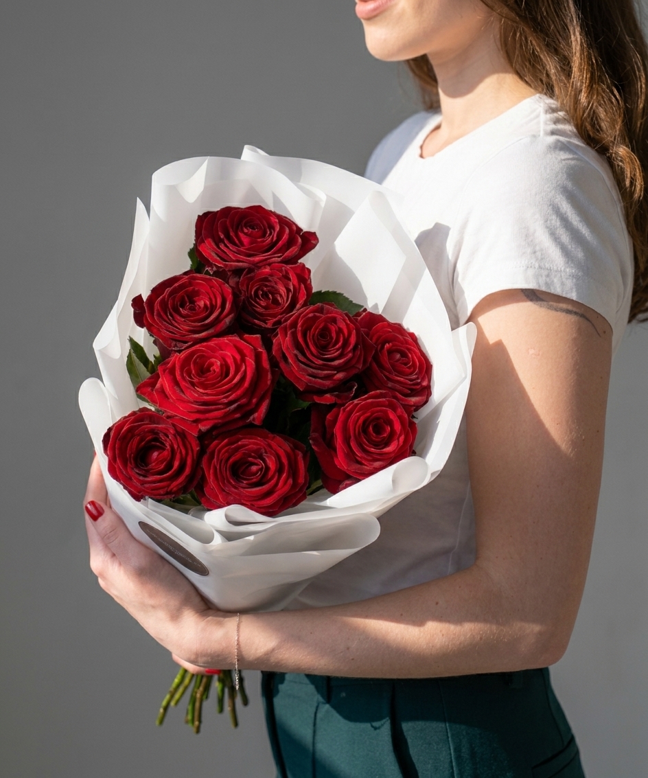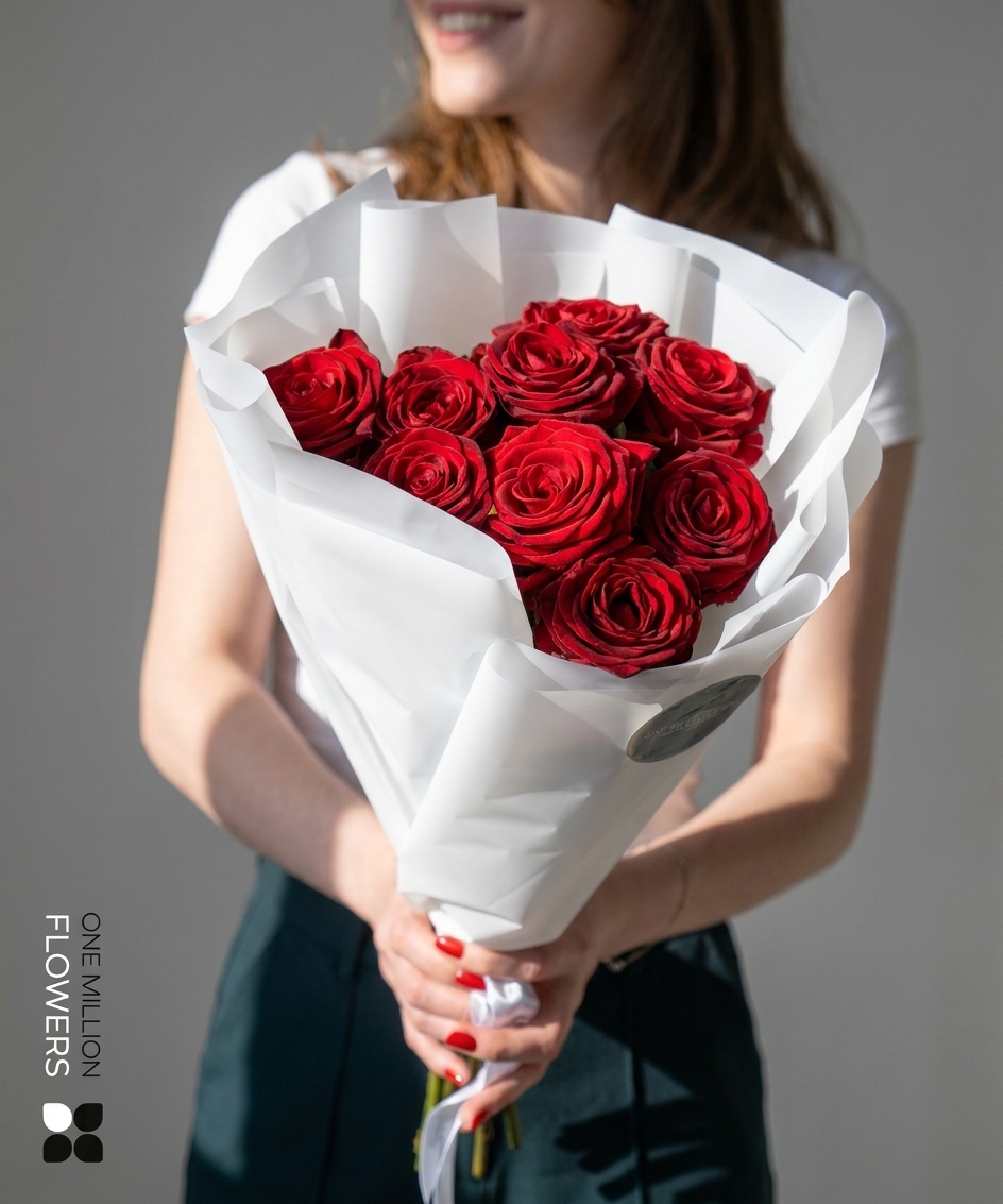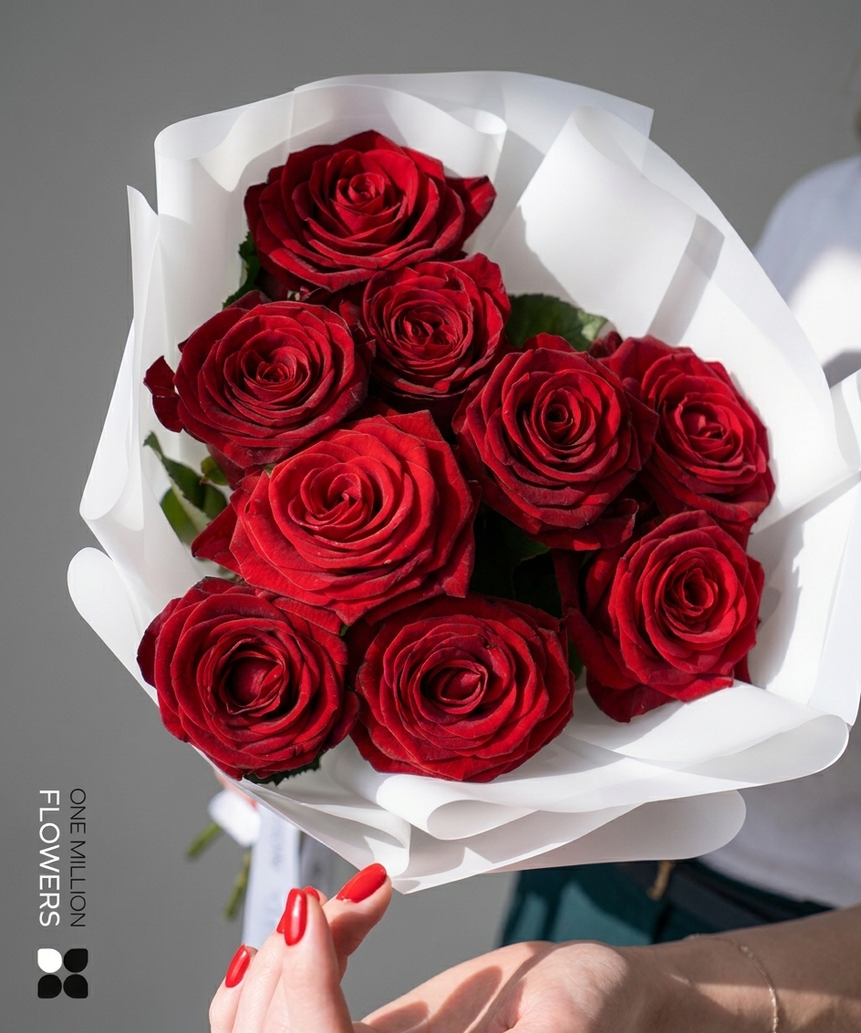 В состав букета входит 9 великолепных роз сорта "Рэд Наоми". Эти цветы известны своими крупными, сладко пахнущими лепестками и долговечностью. Благодаря комбинированным характеристикам, таким как насыщенный цвет и крепкая структура стебля, они великолепно сохраняются дольше, чем многие другие сорта. Розы "Рэд Наоми" придают букету романтичность и шик, делая его идеальным акцентом на любом торжестве.