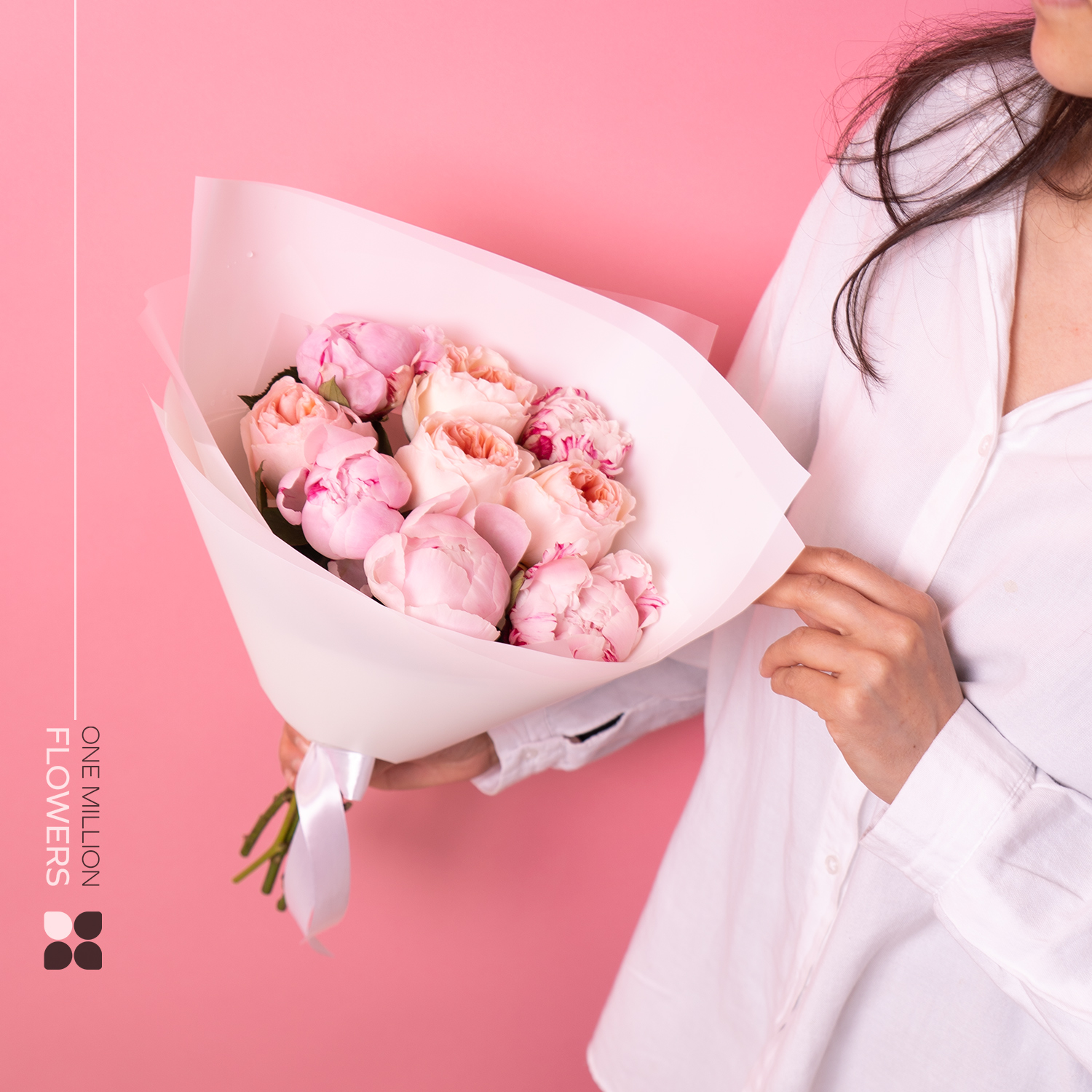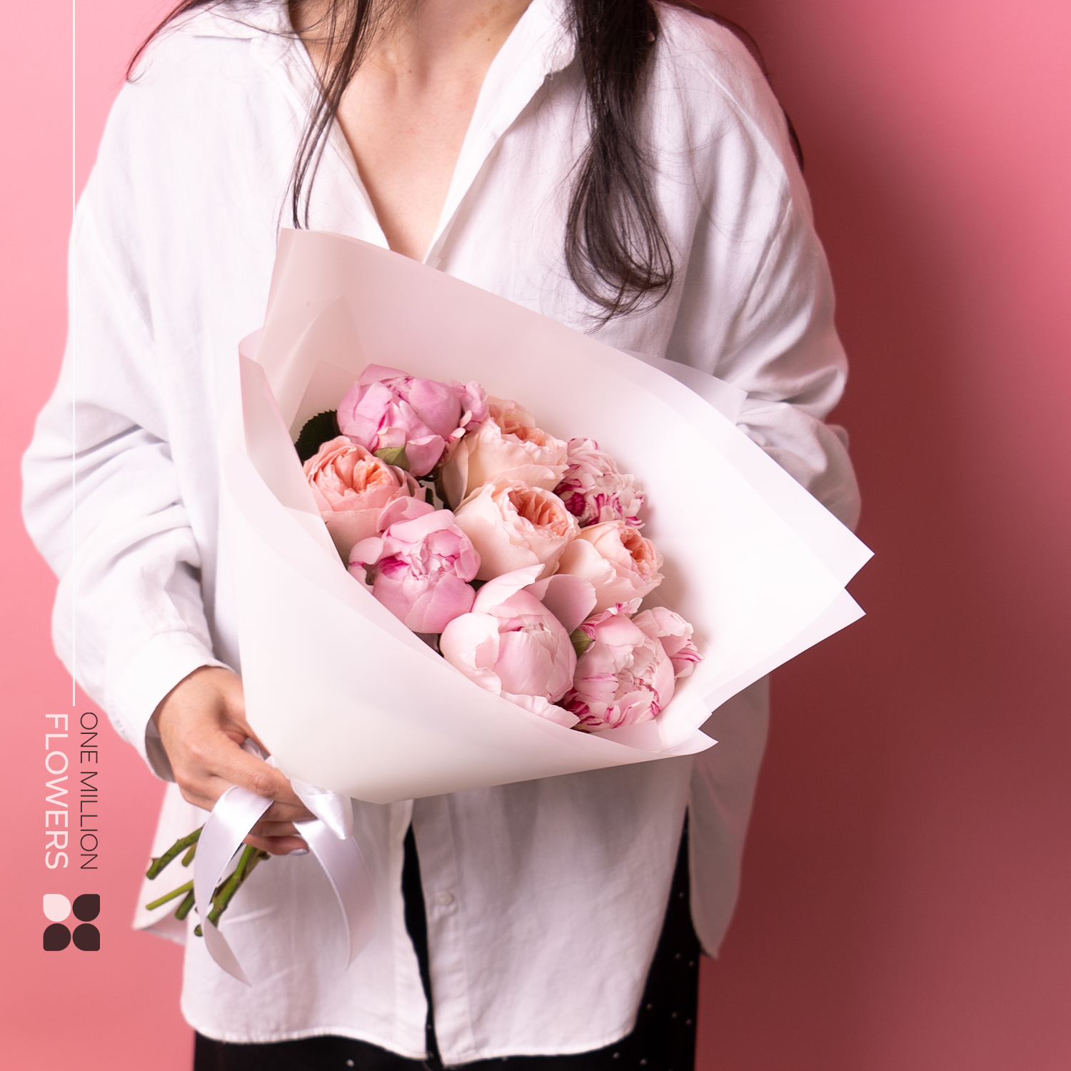 В нашем букете "Сара Джулия" White собраны самые изысканные цветы. В его состав входят 5 розовых пионов, которые символизируют любовь и нежность, а также 4 пионовидные розы сорта Девид Остин Джульетта — настоящая находка для любителей романтики! Искрящееся великолепие, которое излучают эти цветы, не оставит равнодушным никого.