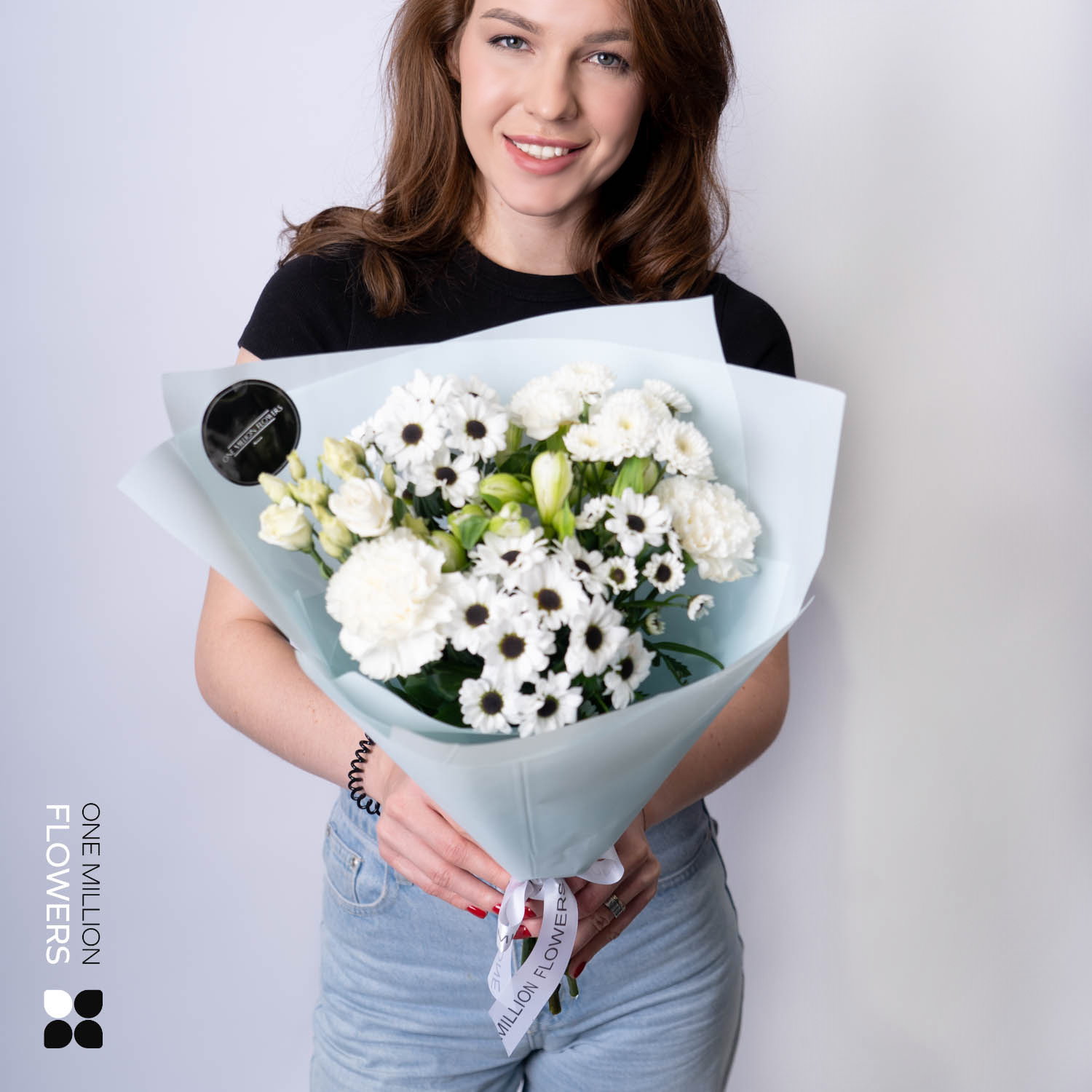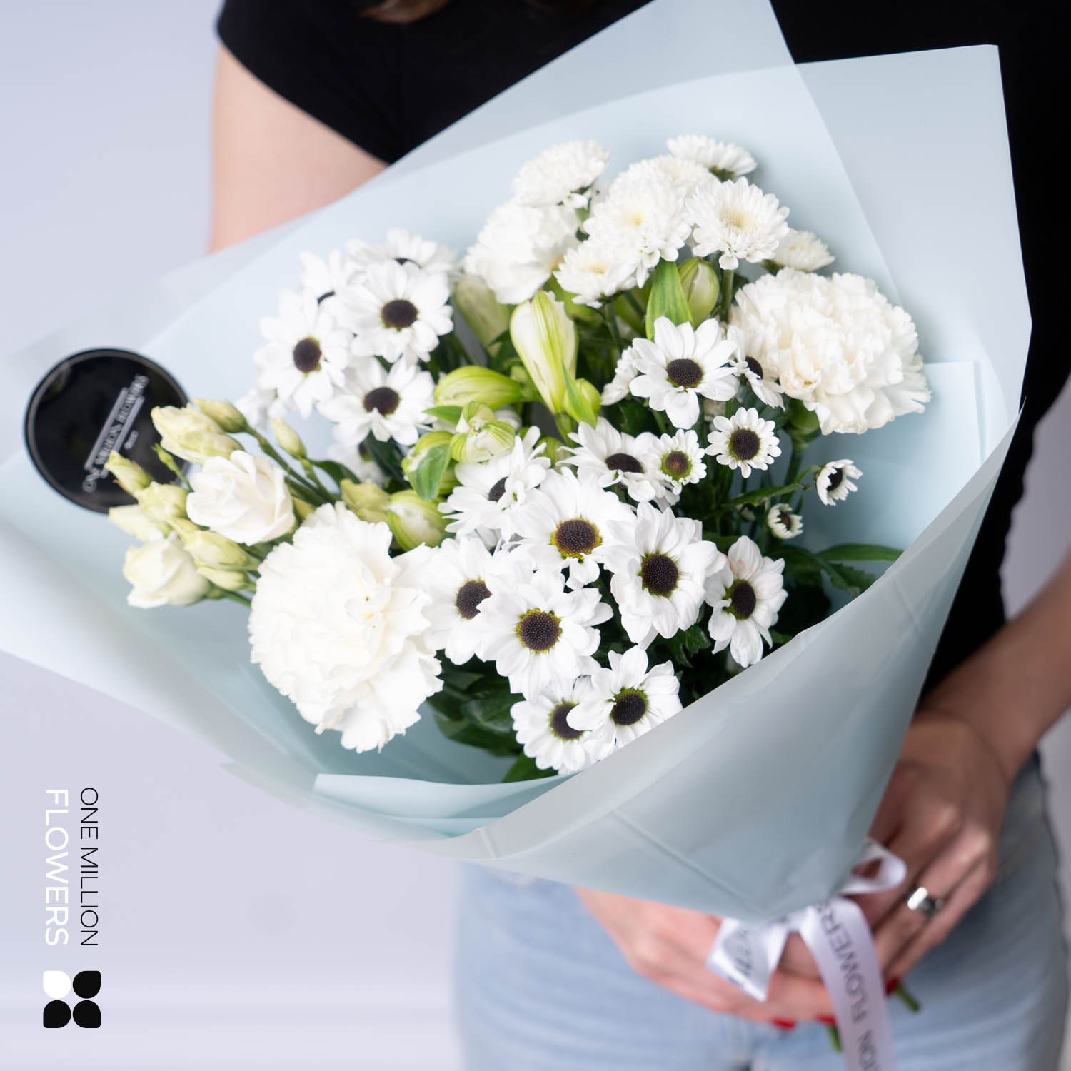 Букет "Шимона Вайт" — это изысканная композиция, в которой сочетаются красота и свежесть лучших цветов. В его составе: хризантема Сантини белая (3 шт.), диантус белый (2 шт.), эустома белая (1 шт.), альстромерия (2 шт.). Каждый цветок в этом букете несет в себе часть тепла и заботы, создавая неповторимое настроение.