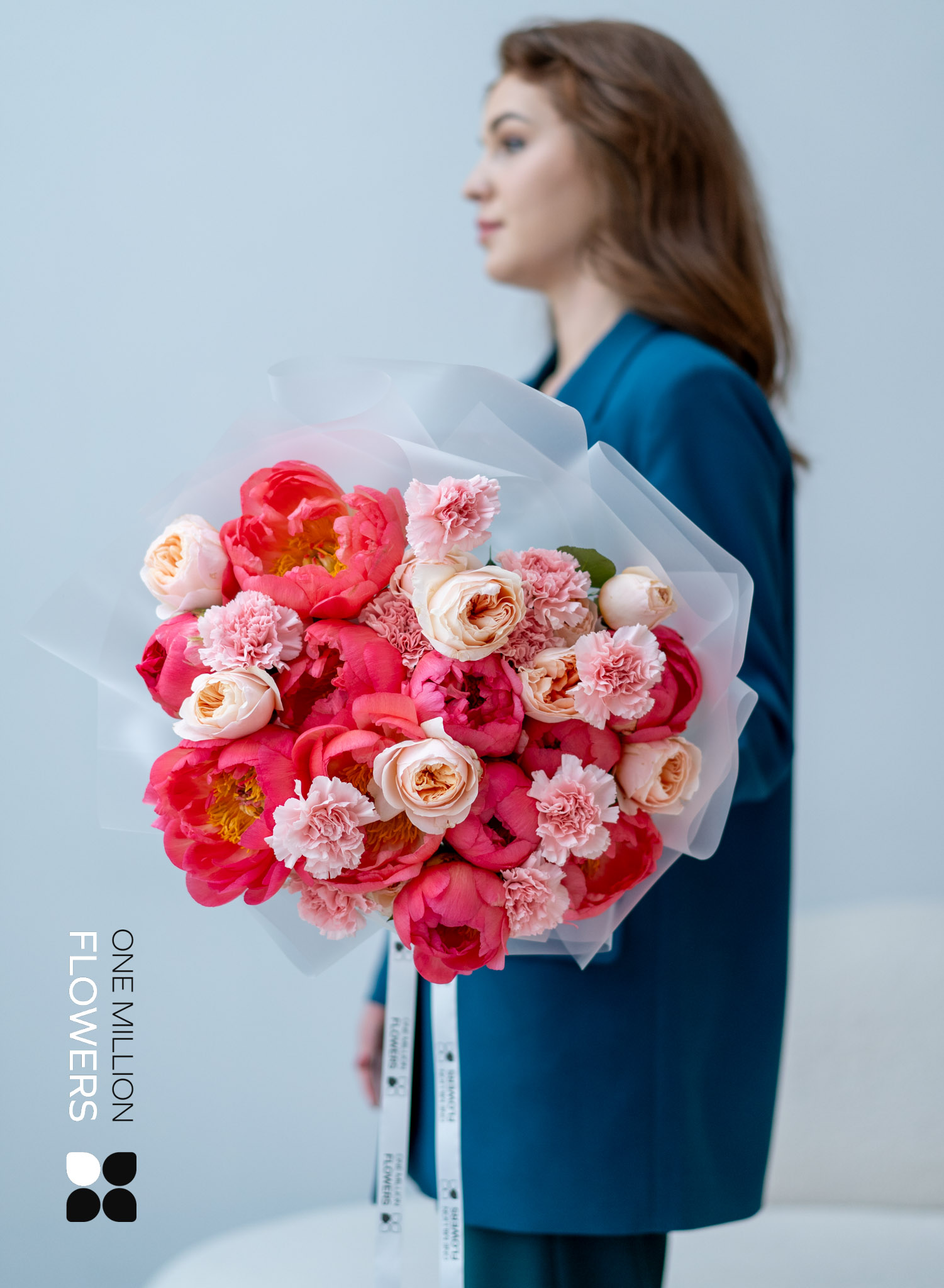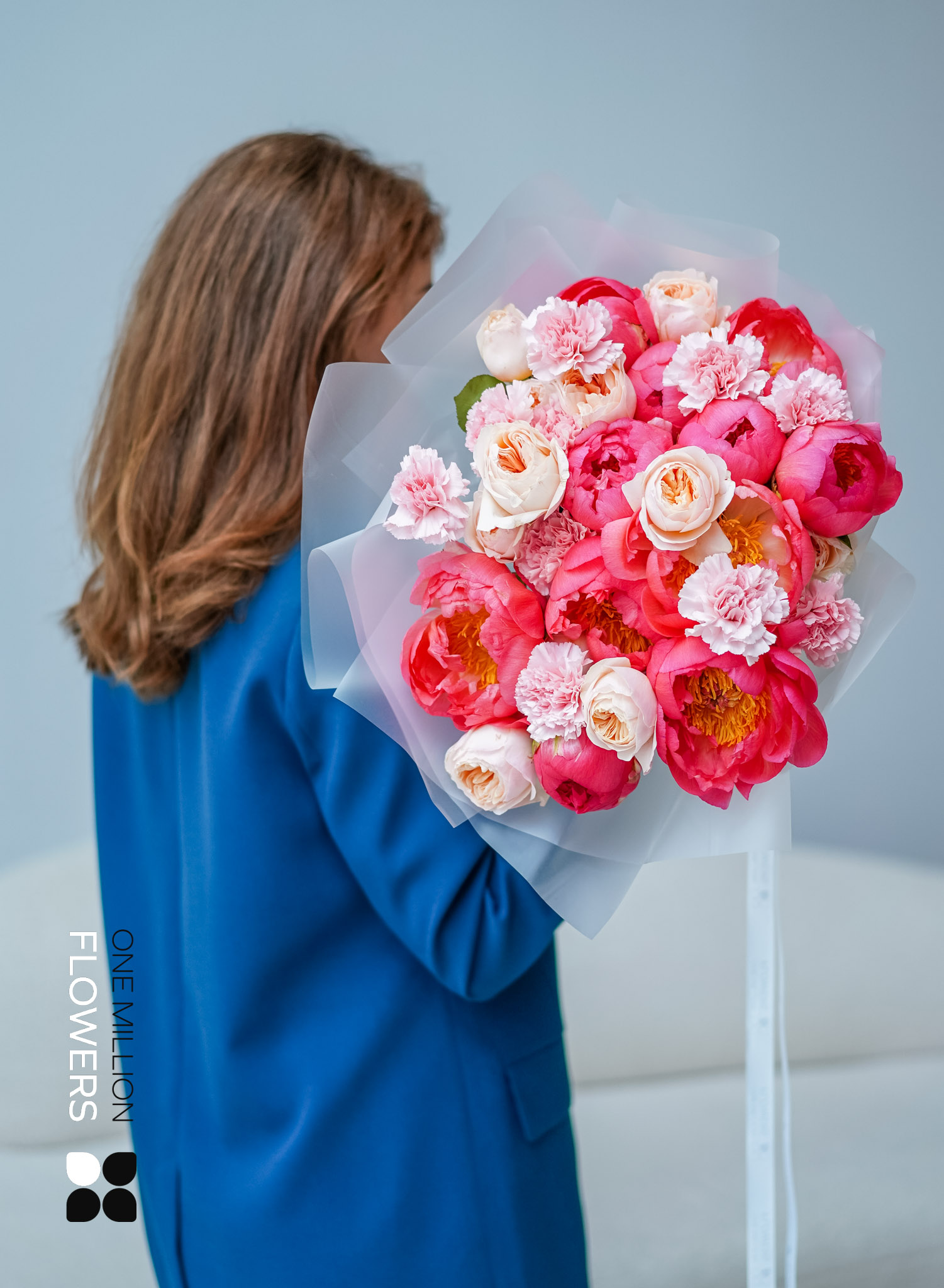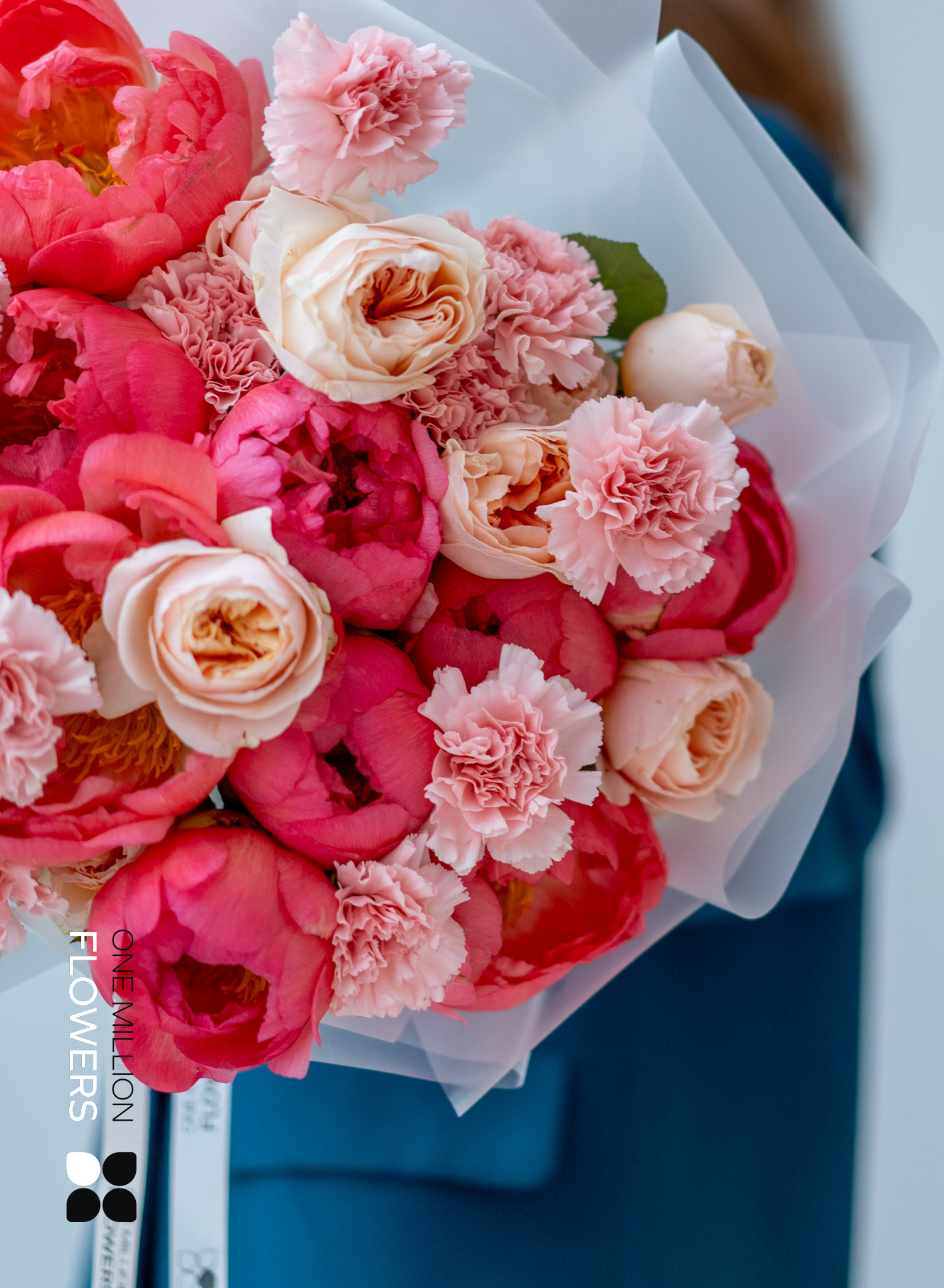Букет Trio "Коралл Х Джульетта" — это изящество в каждой детали. В его составе 9 штук пионовидных роз Девид Остин Джульетта, обладающих нежным оттенком и изысканным ароматом. Здесь также 9 гвоздик розового цвета, добавляющих лёгкость и свежесть композиции. Завершает этот элегантный ансамбль 11 коралловых пионов, которые привносят яркость и глубину, делая букет поистине великолепным. Каждый цветок тщательно отобран, чтобы сочетаться в общей палитре, создавая неповторимый образ.