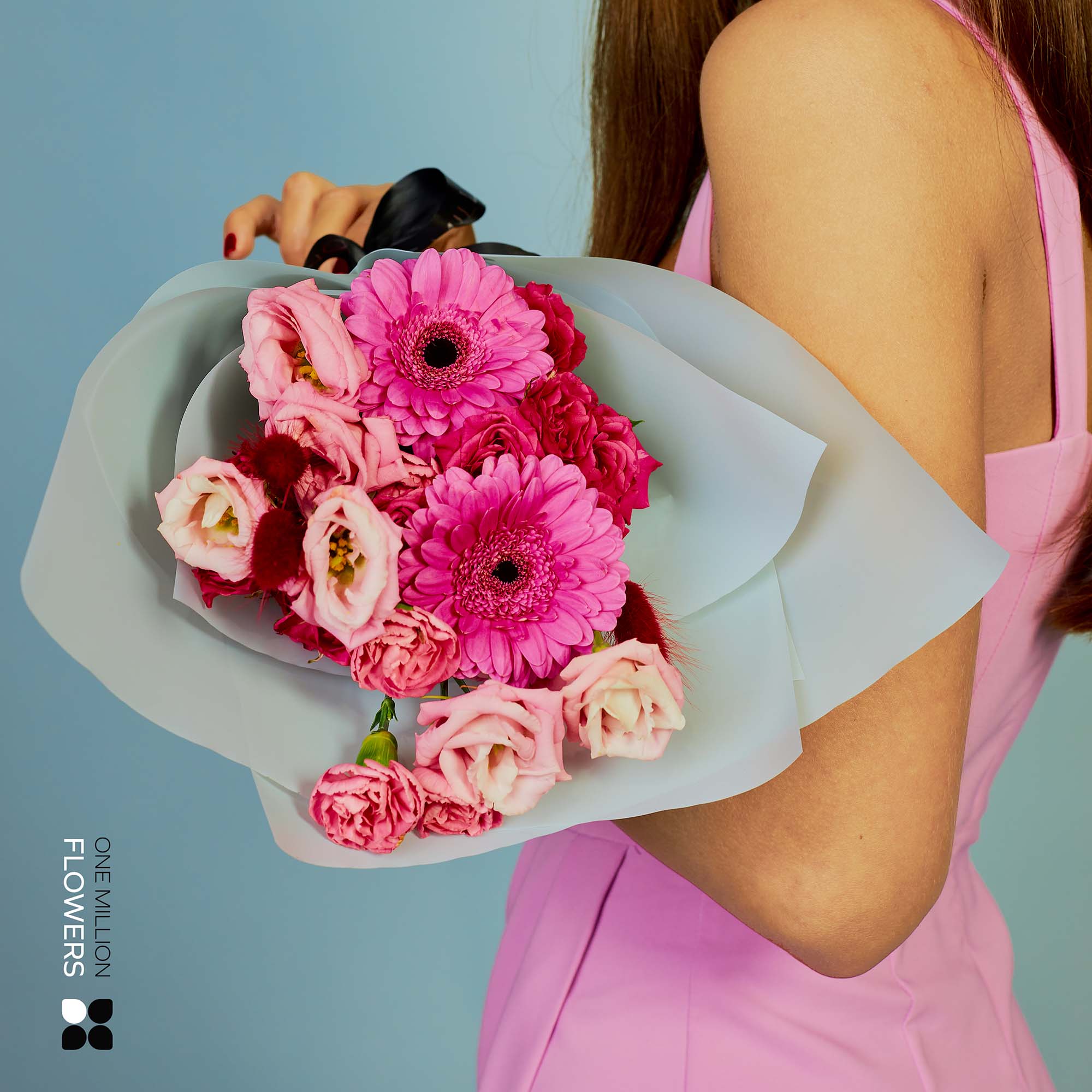 В состав букета "Ультра-Пенидо" Blue входят: 5 шт. розовой эустомы, 1 шт. сухоцвета лагурус, 7 шт. малиновых кустовых роз Лианна и 3 шт. гербер. Каждая деталь подобрана с любовью, чтобы букеты не только радовали глаз, но и приносили удовольствие своим обладателям.