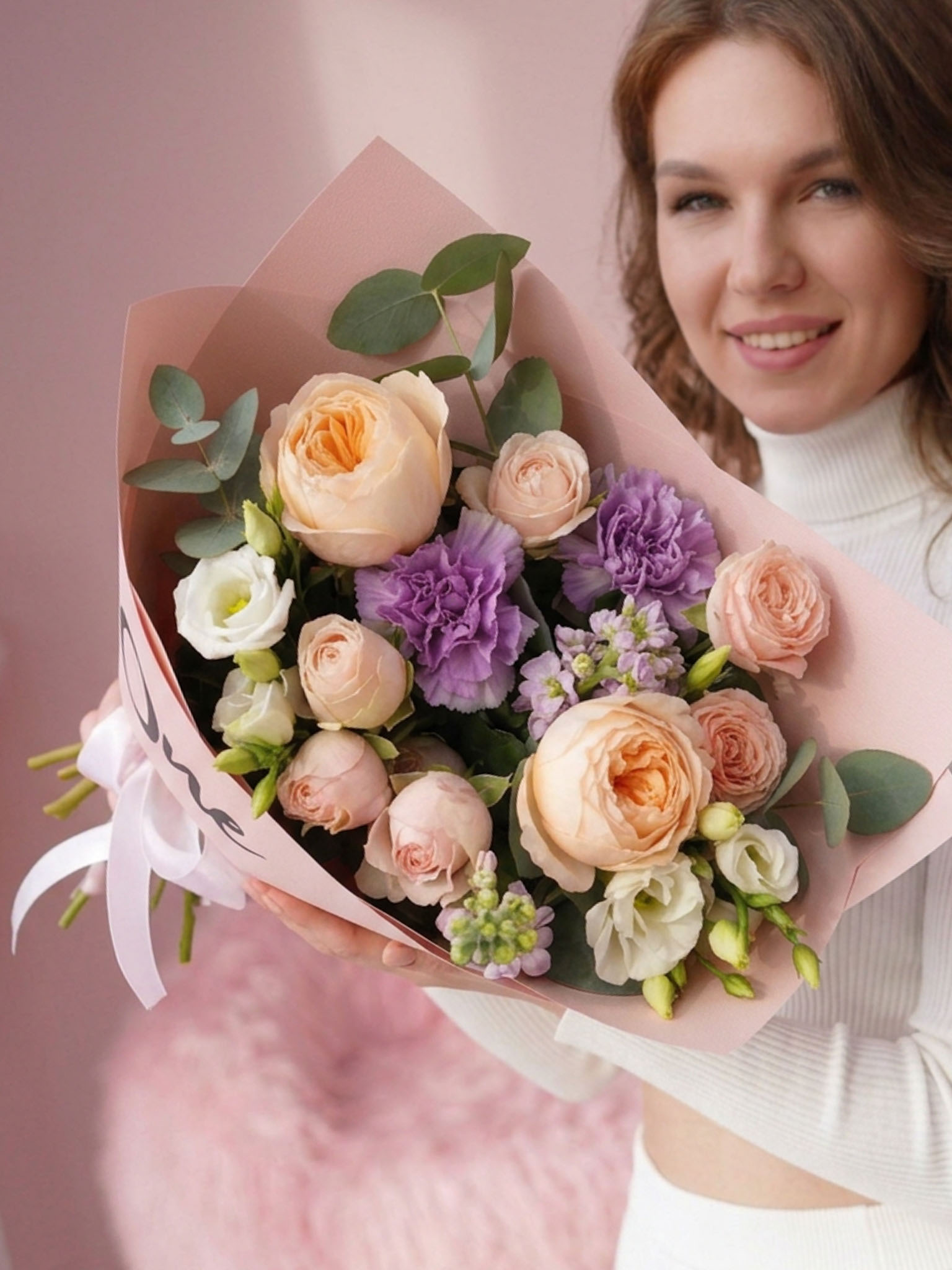 Букет "Уно Ремо" наполнен великолепием и изяществом. В его состав входят 1 пионовидная роза Девид Остин Джульетта, 2 маттиолы сиреневого цвета, 3 кустовые розы Бомбастик Кремовый (нежно), 2 эвкалипта и 2 эустомы белого цвета. Эти цветы не просто создают гармоничную палитру, но и обладают своим символизмом: пионы олицетворяют счастье и новый старт, в то время как маттиолы являются символом любви и верности. Нежные цветовые сочетания и богатый аромат создают атмосферу, которая наполнит любое пространство теплом и радостью. Порой, погружаясь в эту цветочную симфонию, невольно представляется уютный вечер, когда любимый человек неожиданно проявляет чувства, даря такой волшебный букет.Кому и По Какому Поводу Подходит Этот Букет?