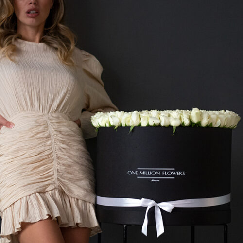 Вы ищете нечто особенное, что могло бы привнести шик и роскошь в настроение вашего праздника? Коробка «Аваланш» Mega Grand Black – это то, что вы давно искали. Этот букет включать в себя от 81 до 151 штук прекрасных белоснежных роз, количество цветов зависит от размера бутона, так как иногда приходят розы с очень большими бутонами и они физически не поместятся в коробку Mega Grand. Большая плотность цветов может передавить бутоны и букет завянет очень быстро. Черная коробка в сочетании с нежными цветами создает элегантный и стильный образ.