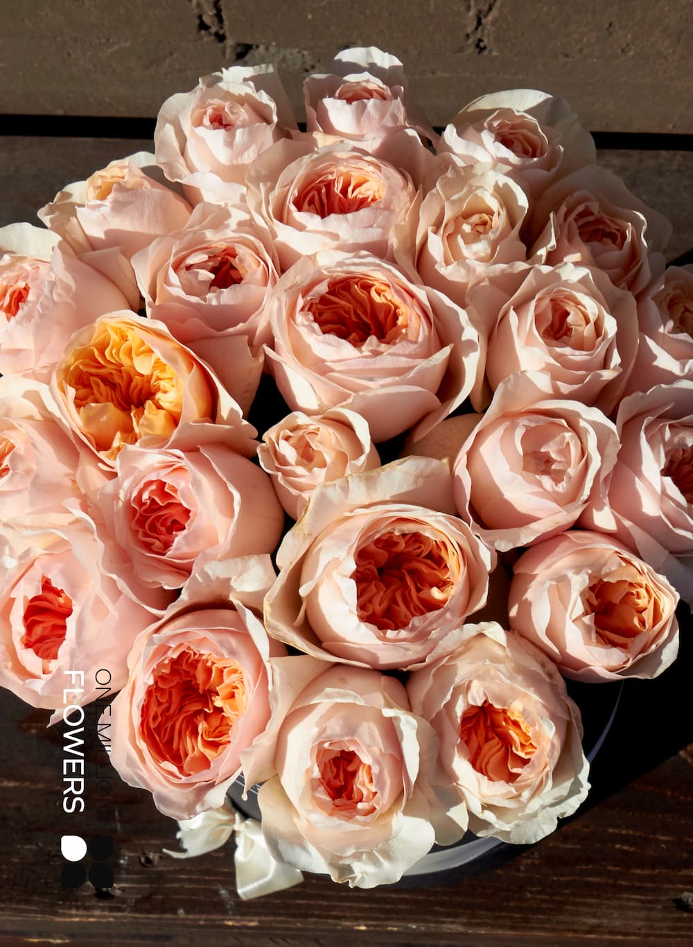 Основой этого шикарного букета являются роскошные пионовидные розы Девид Остин Джульетта. Эти прекрасные цветы не только нежны и красивы, но также обладают свежим ароматом, способным создать атмосферу любви и романтики. Благодаря своей великолепной композиции и уникальности каждого стебля вы сможете передать самые теплые чувства и эмоции.