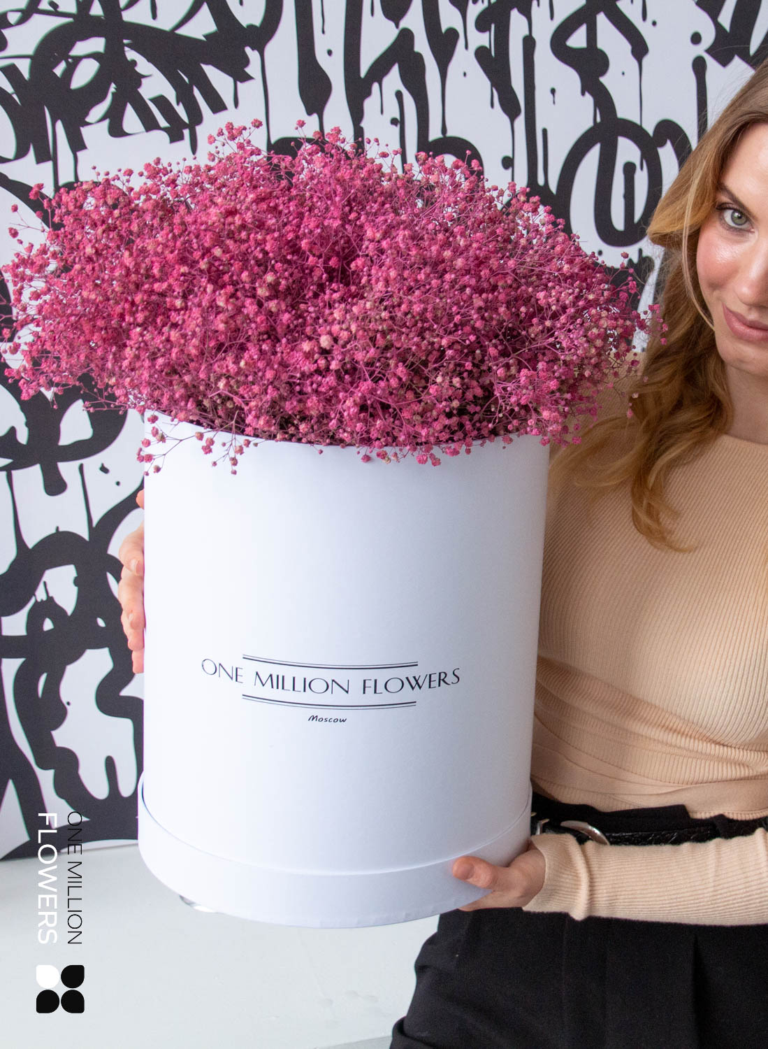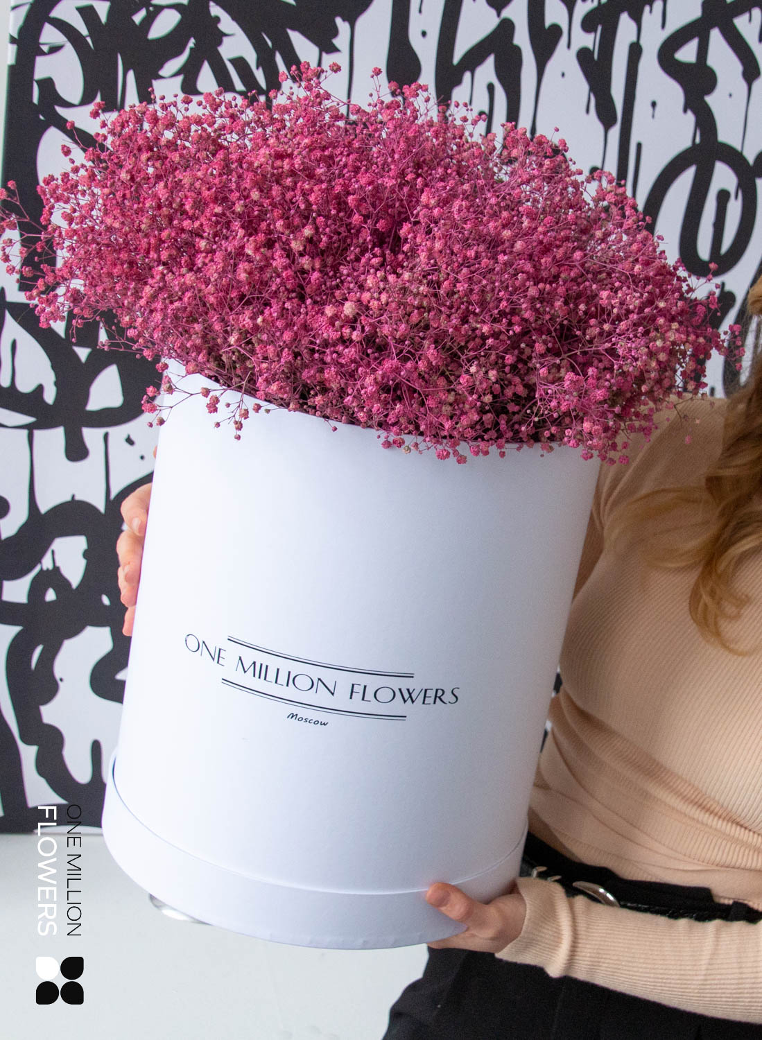 Коробка с гипсофилой — это не просто цветы, а настоящее произведение искусства, которое подойдет для создания романтической атмосферы или как комплимент к любому празднику. Её можно использовать как самостоятельный подарок или дополнение к основному презенту.