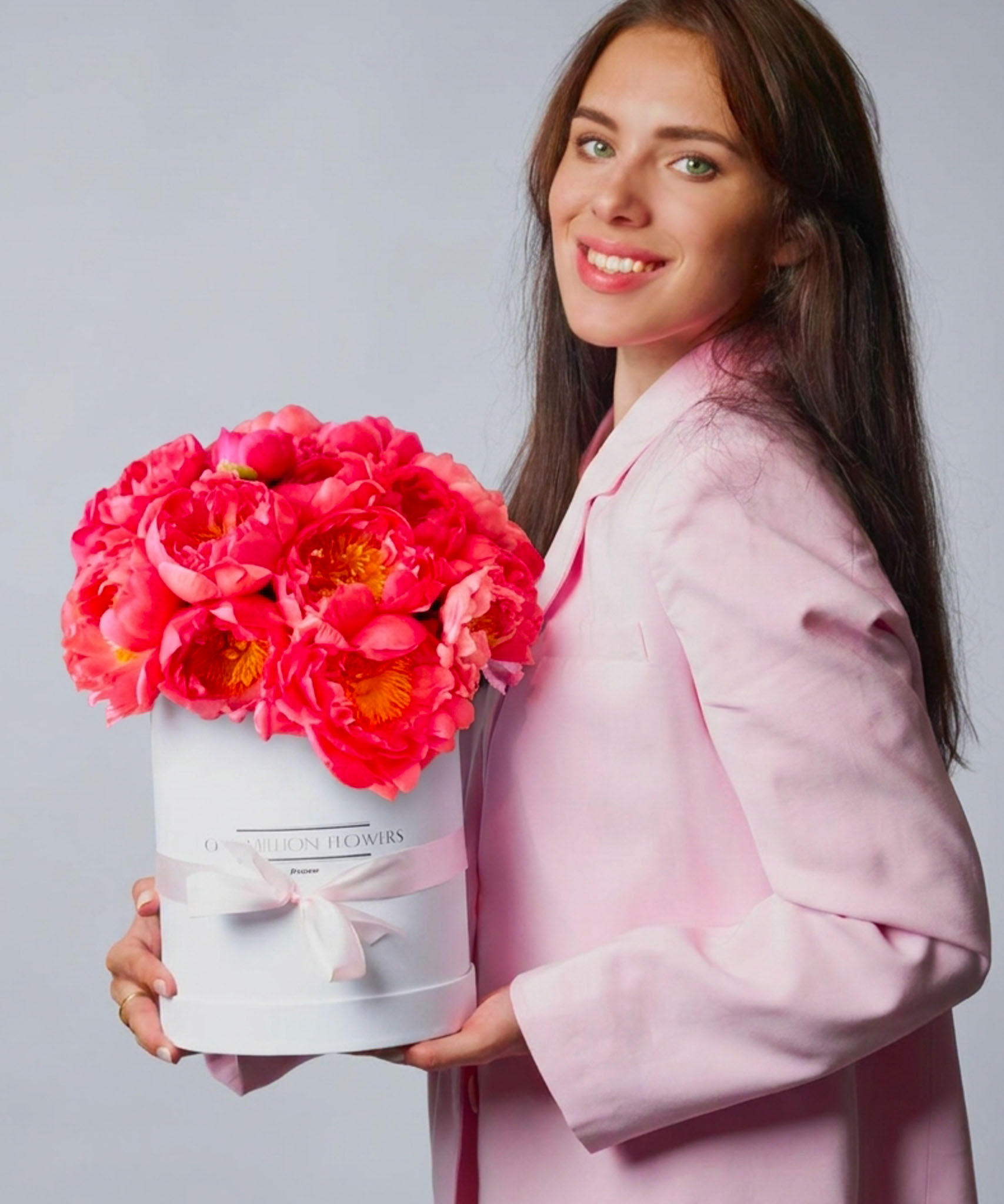 Коробка с пионами "Салмон Дрим" White