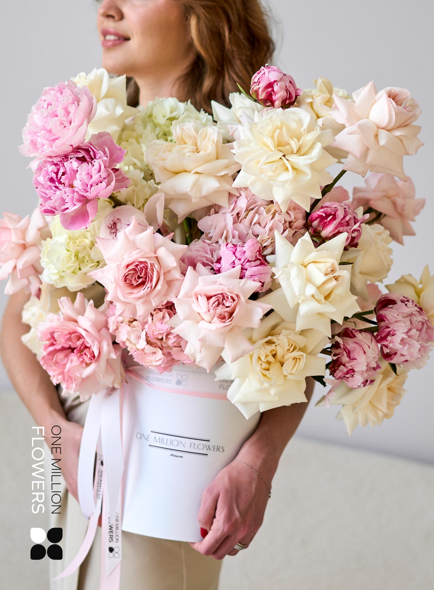 Коробка "Сара Креман" White наполнена свежими цветами, которые вызывают восхищение. Здесь вы найдете пионовидную розу Пинк Охара, гортензию, белую эустому и множество других цветочных композиций, которые идеально дополнят ваш праздник. Мы используем только отборные цветы, чтобы каждая коробка становилась настоящим произведением искусства. Пионовидные розы, например, являются символом любви и элегантности, а их грациозные лепестки напоминают о нежности и радости, которую они могут принести в сердце. Исторически эти цветы были популярны в европейских садах, начиная с 18 века, и до сих пор остаются атрибутом утончённого вкуса и стиля.
